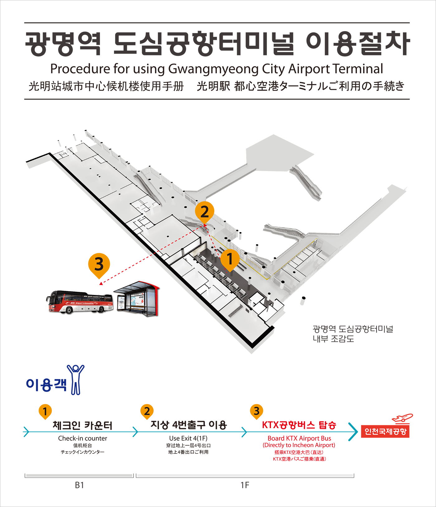 - KTX 광명역 도착 → 에스컬레이터 타고 지하 1층 이동