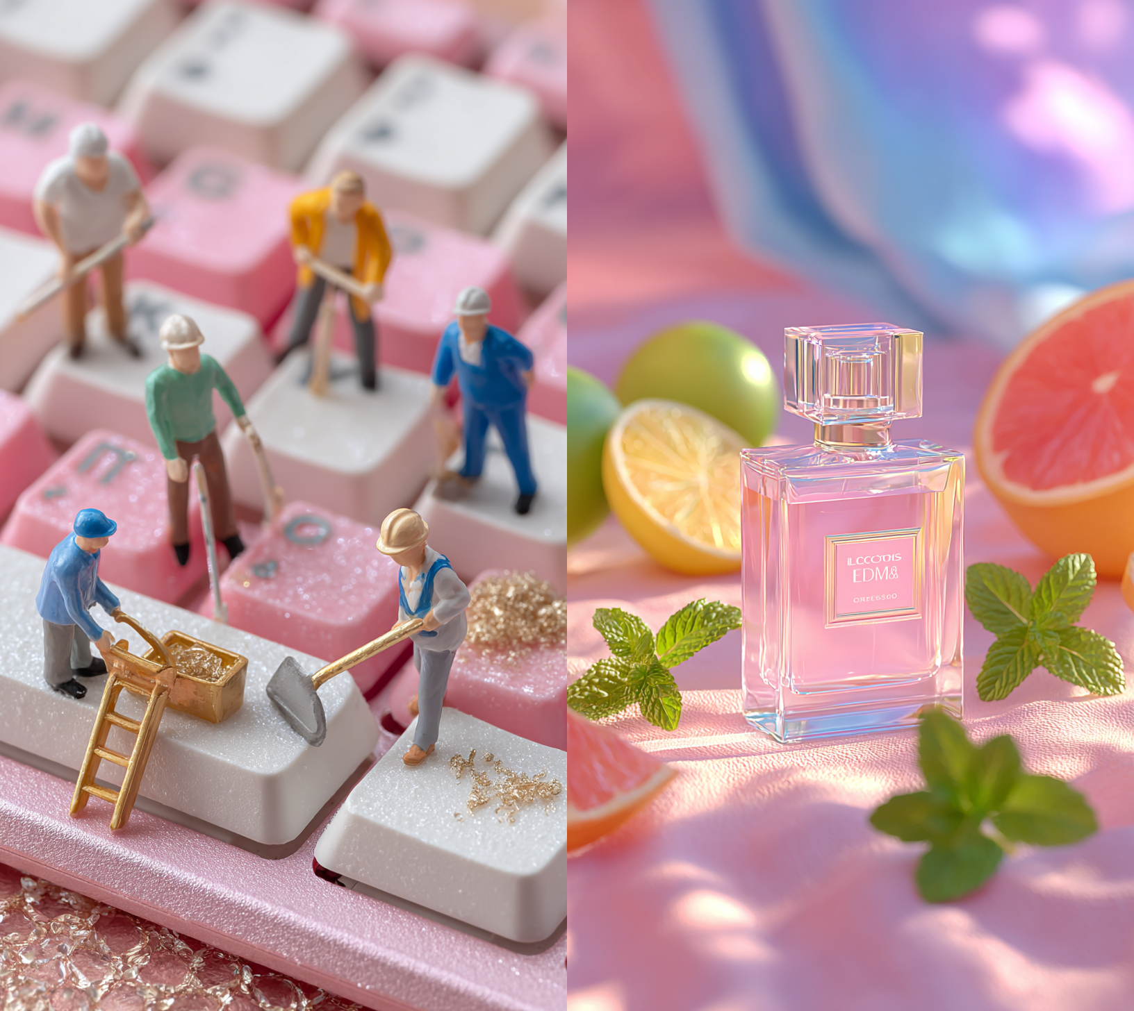 아래의 빨간 박스 안에 있는 텍스트가 바로 이 향수 광고 이미지를 만들어낸 명령어(프롬프트)입니다.