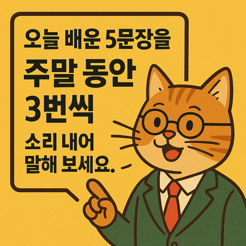 오늘 배운 5문장을 주말 동안 3번씩 소리 내어 말해 보세요. 실제로 친구에게 말해 보거나, 애니메이션을 보다가 문장이 나오면 따라 해 보세요! 다음 주에는 더 재미있는 생활 일본어 콘텐츠로 찾아뵙겠습니다!