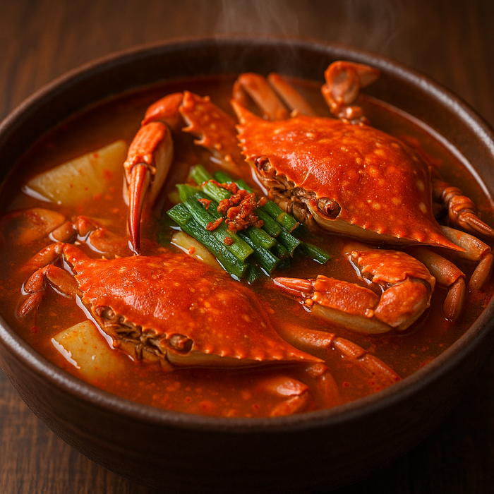 - 끓이기: 끓는 육수에 꽃게를 넣고, 간 마늘과 대파 등을 넣어 팔팔 끓여주세요. 시원한 맛을 위해 쑥갓이나 미나리를 마지막에 올려주면 향이 더욱 좋아집니다.