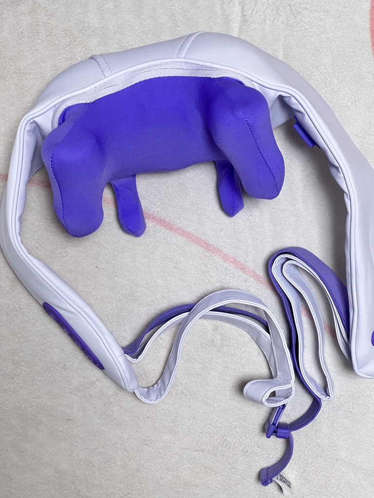 목과 승모에 마사지볼이 닿게 설계되어 있어서 작동을 누르면 꽤 쎈 압으로 마사지를 해줍니다. 목과 승모를 같이 풀어야 시원하잖아요. 간혹 봤던 리뷰에서 마사지기가 고민 부위에 잘 안 맞아서 시원하지 않다고 하던데... 전 괜찮았습니다.